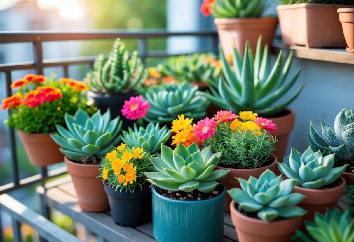This creates a lively balcony display that stays low-maintenance and long-lasting.