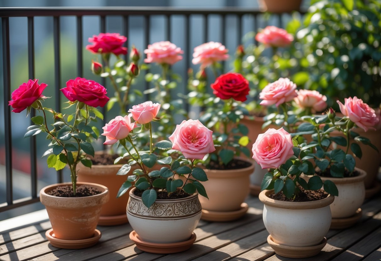 Miniature roses fit well on small balconies and bring steady color without taking much space. Choose pots with good drainage and use a high-quality potting mix to keep roots healthy.