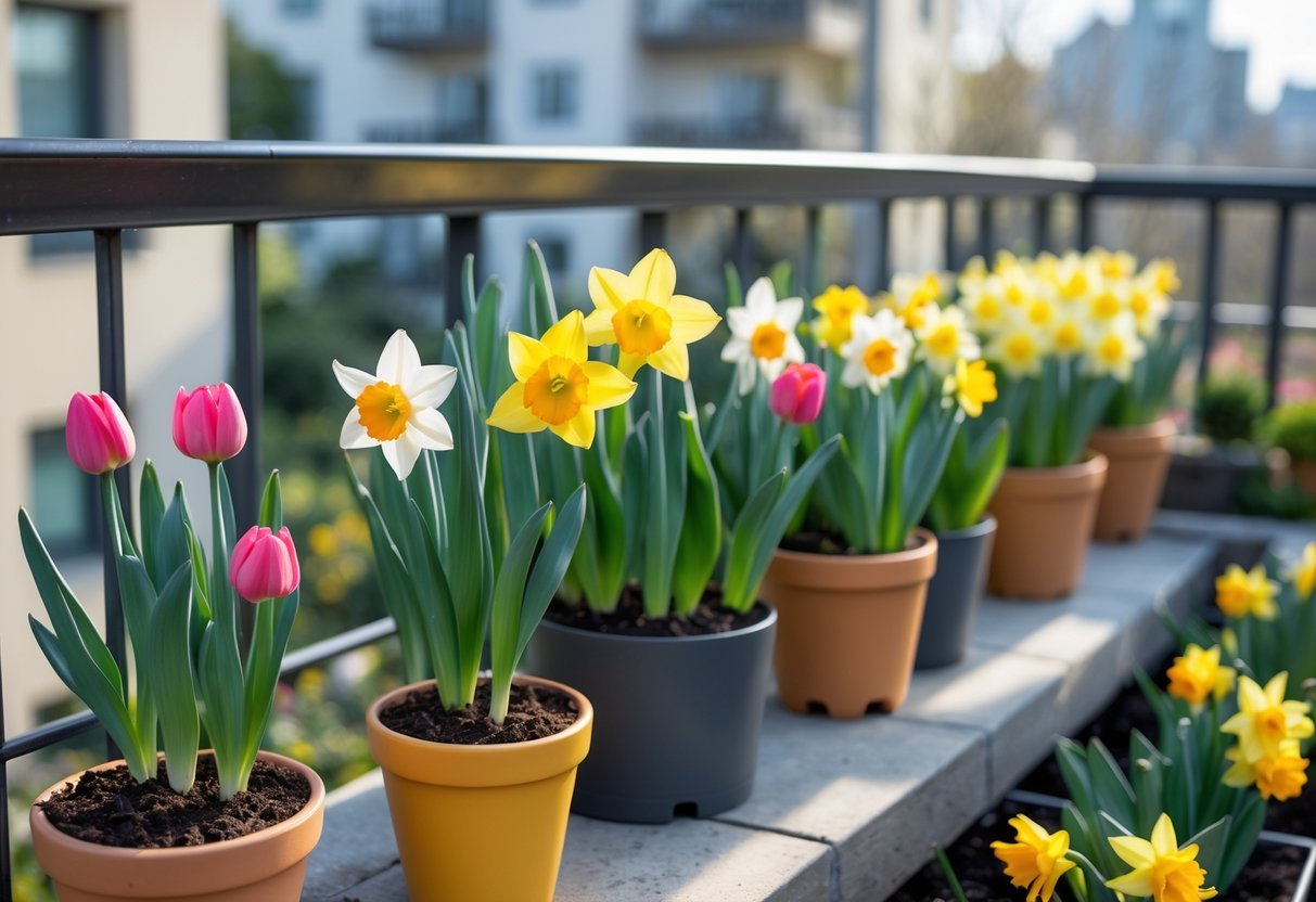 Stagger planting times or use varieties with different bloom dates to extend color on a small balcony. Move pots as needed to protect shoots from late frost.