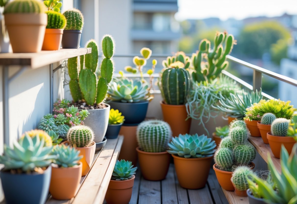 Create a small corner with pots of succulents and a few safe, soft-spined cacti to reduce prick risks. Place taller plants at the back and low rosettes in front for a neat layered look.