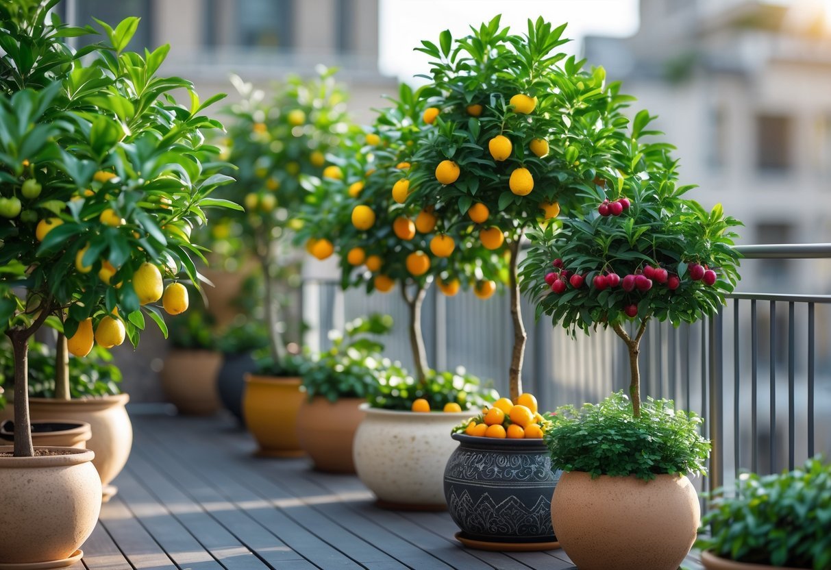 You can grow dwarf citrus, figs, or pomegranates in large containers on your balcony.