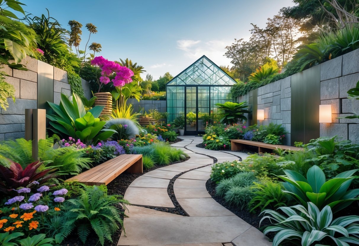 These answers cover adding modern materials and tech, simple features for small sites, DIY sources, low-care plant choices, ways to echo botanical themes in decor, and layout priorities like paths, sightlines, and microclimates.