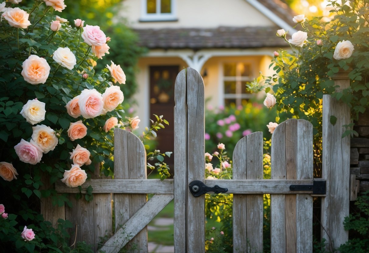 You can grow pastel roses to soften a wooden or metal gate and add instant charm. Train climbers on a simple trellis or wire so they follow the gate’s shape without overwhelming it.