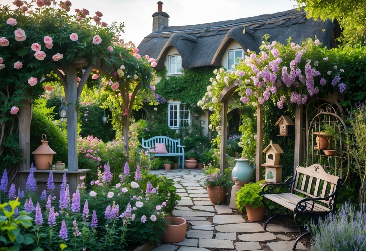 You’ll find ways to blend flowers, vines, herbs, and paths so your garden stays interesting through the seasons. The ideas focus on easy choices—plants and features that work together to create a warm, slightly wild look you can enjoy every day.