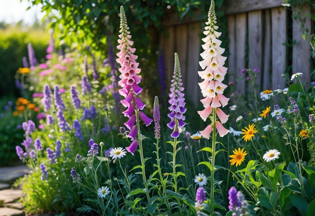1) Incorporate self-seeding foxgloves for effortless natural blooms
