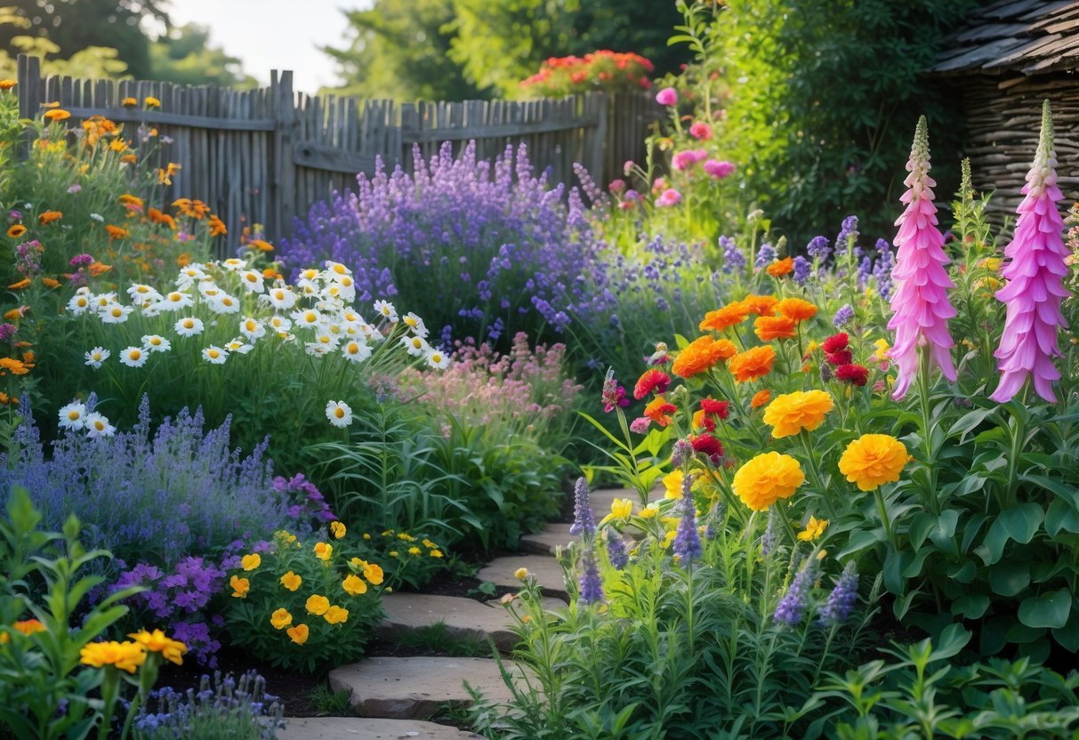 These answers focus on plant choices, layout tips, and simple features you can add. Expect specific ideas like foxgloves, clematis, mixed beds, winding paths, and combining perennials with annuals.