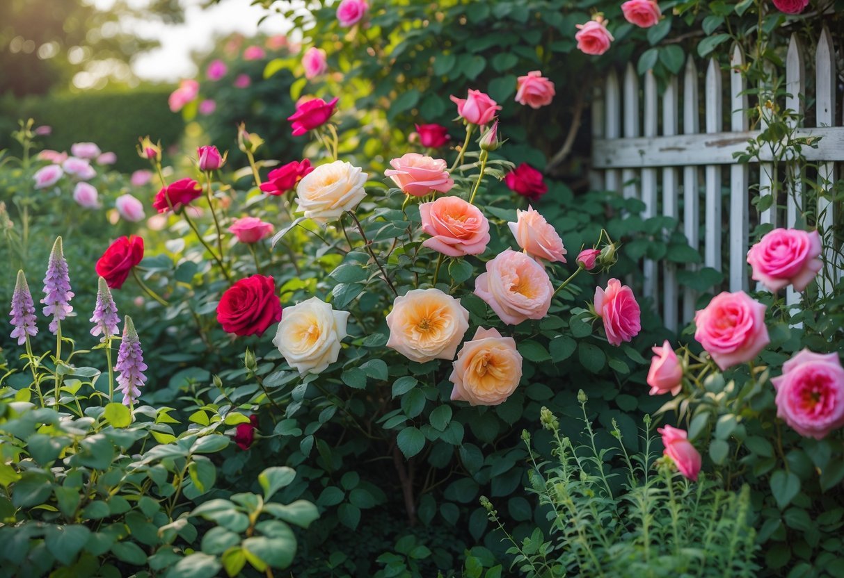 Plant climbing roses on fences or arbors to add height and a timeless feel. Mix shrub roses with perennials so blooms spill and soften paths.