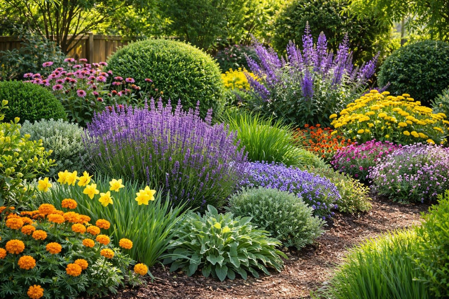 Combine bloom time with texture and scent for the best effect. For example, pair spring alliums with summer coneflowers and fall asters for continuous color.