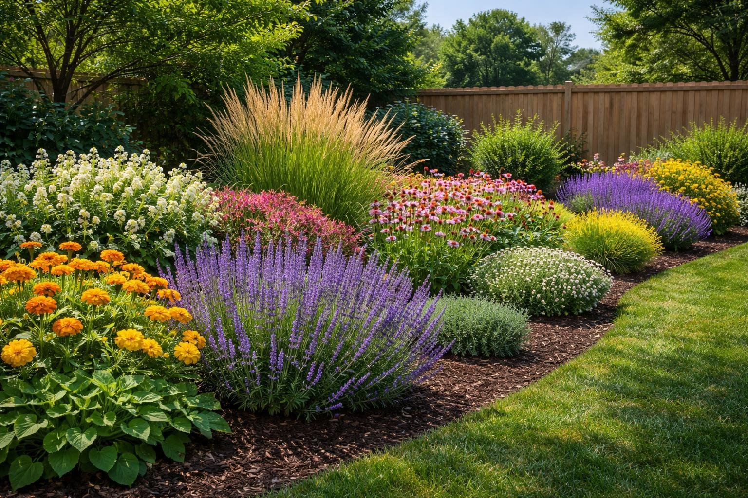 Create small mixed beds with 3–5 species per bed. Use a repeating pattern to confuse deer and make each bed visually cohesive. Include a few sacrificial plants—fast-growing annuals placed away from prized specimens—to draw deer attention away.
