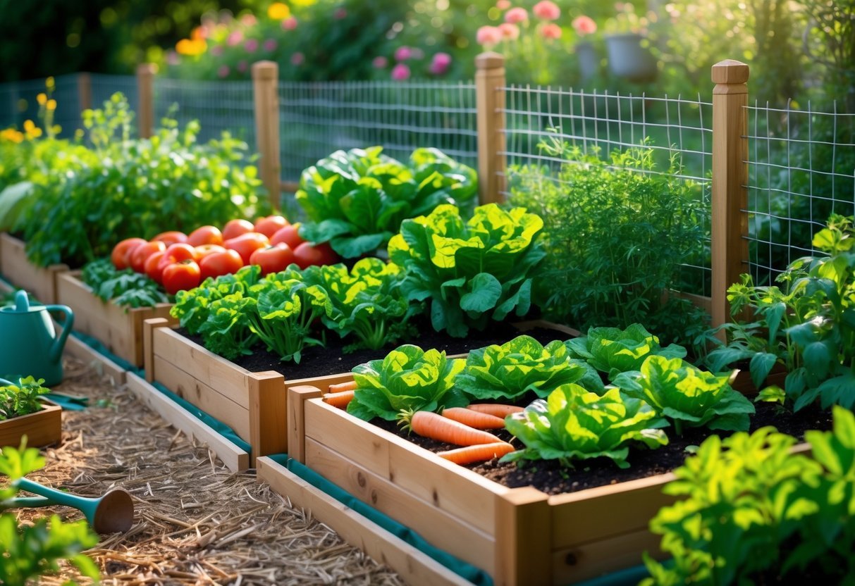 Combine raised beds and fencing to improve drainage, reduce pests, and make repairs easier. Build beds 12–18 inches high to deter ground beetles and reduce back strain when planting and harvesting. Use pressure-treated or rot-resistant wood, metal, or composite for long life.