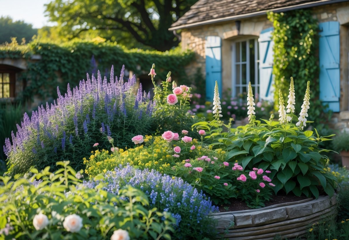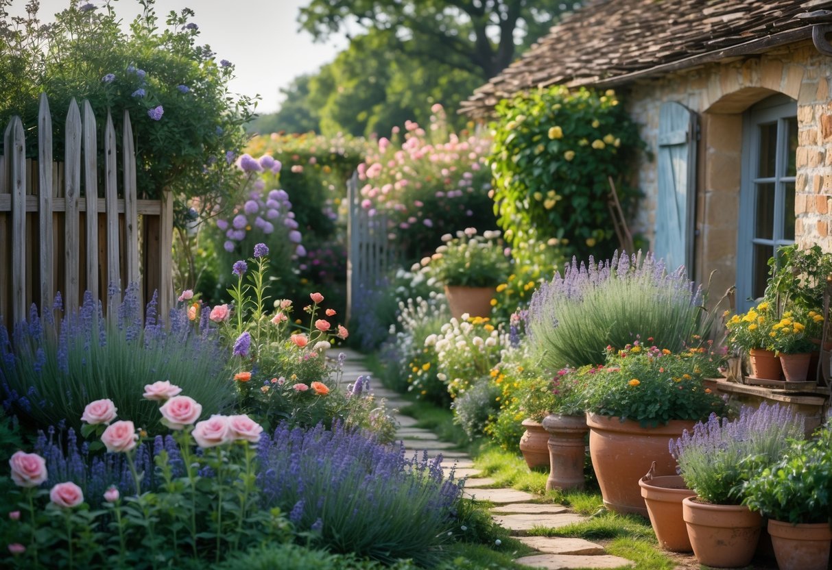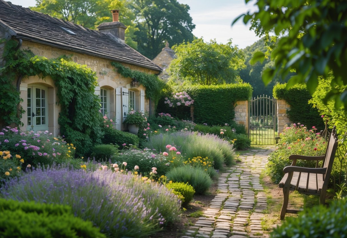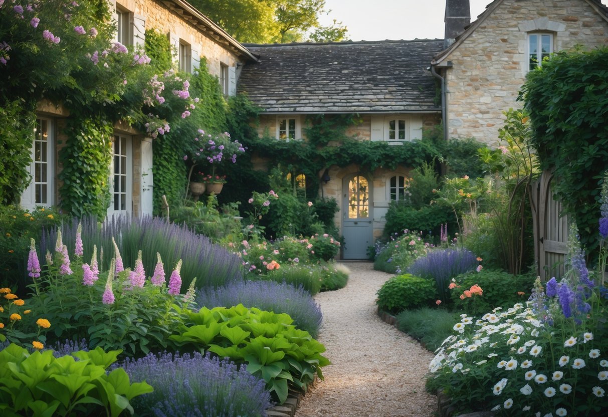 English cottage gardens often look denser and wilder, with heavy mixed borders. French cottage gardens favor a slightly more structured look with clear paths and repeating motifs like lavender hedges.