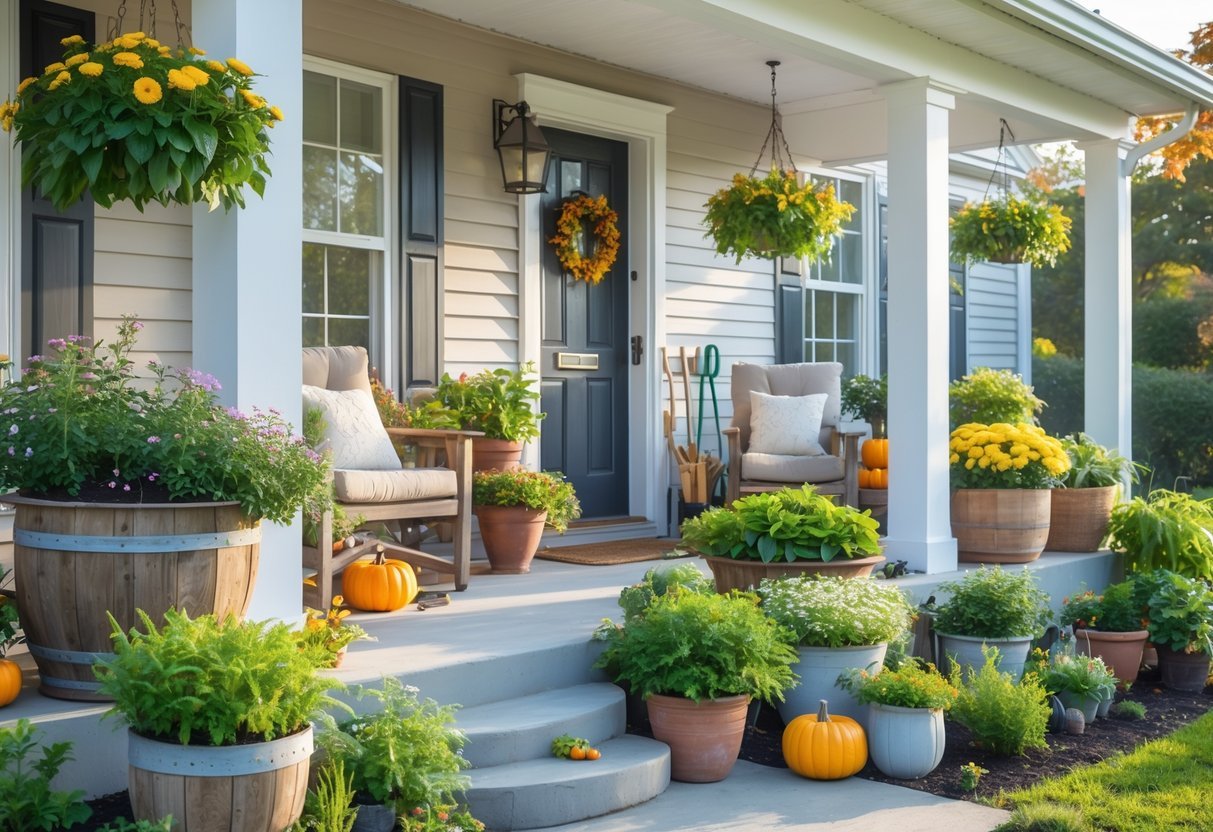 Choose a mix of hardy plants, varied container sizes, and simple seating to create a porch garden that looks intentional and stays easy to care for.