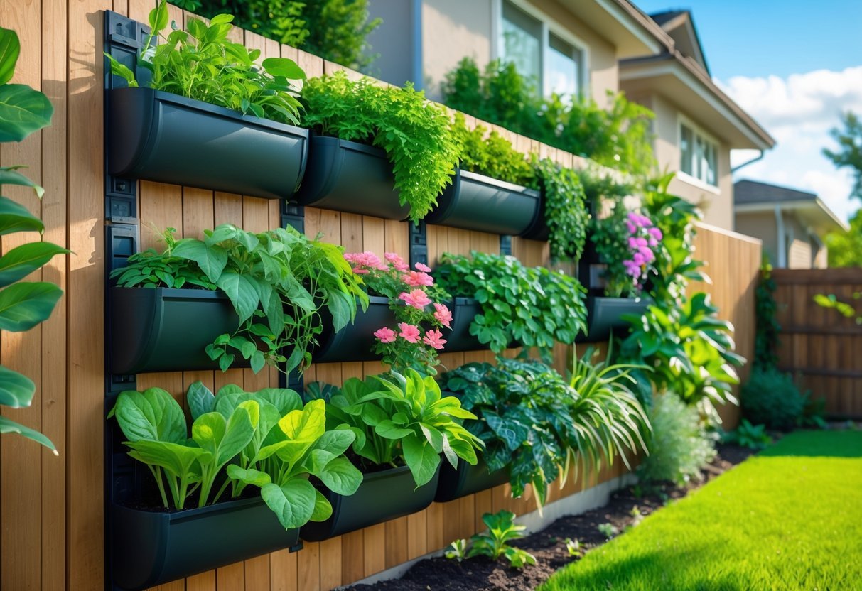 A vertical garden on a fence uses vertical space to grow plants, which saves room in the yard. It is perfect for small front yards that need more greenery without taking up ground area.