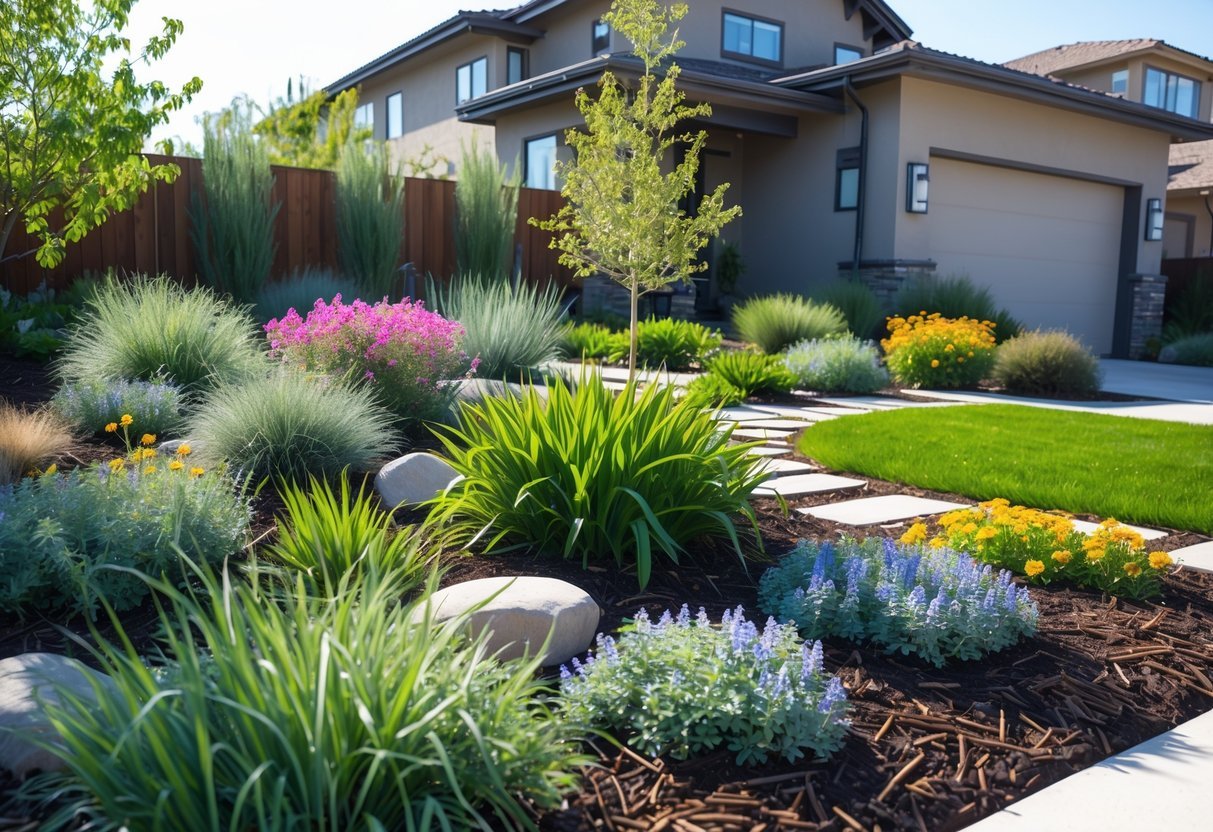 Using native plants is a key step because they need less water and care. Layering shrubs with seasonal flowering bulbs adds color without extra effort. Avoid high-maintenance plants and choose drought-tolerant species for sustainability.