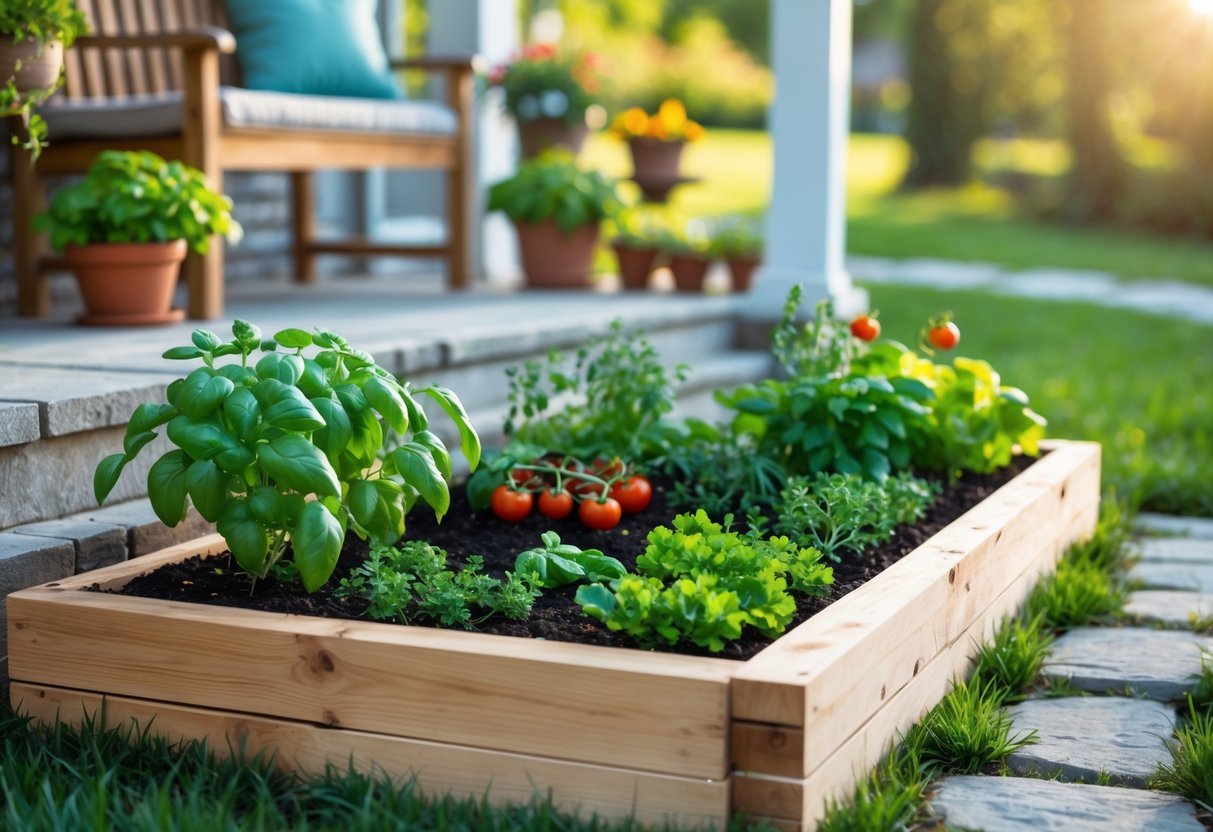 Planting herbs like basil, rosemary, or thyme is simple and adds fragrance. Vegetables such as lettuce or cherry tomatoes can also thrive in this spot. A well-planned bed blends with the porch design and makes the area more inviting.