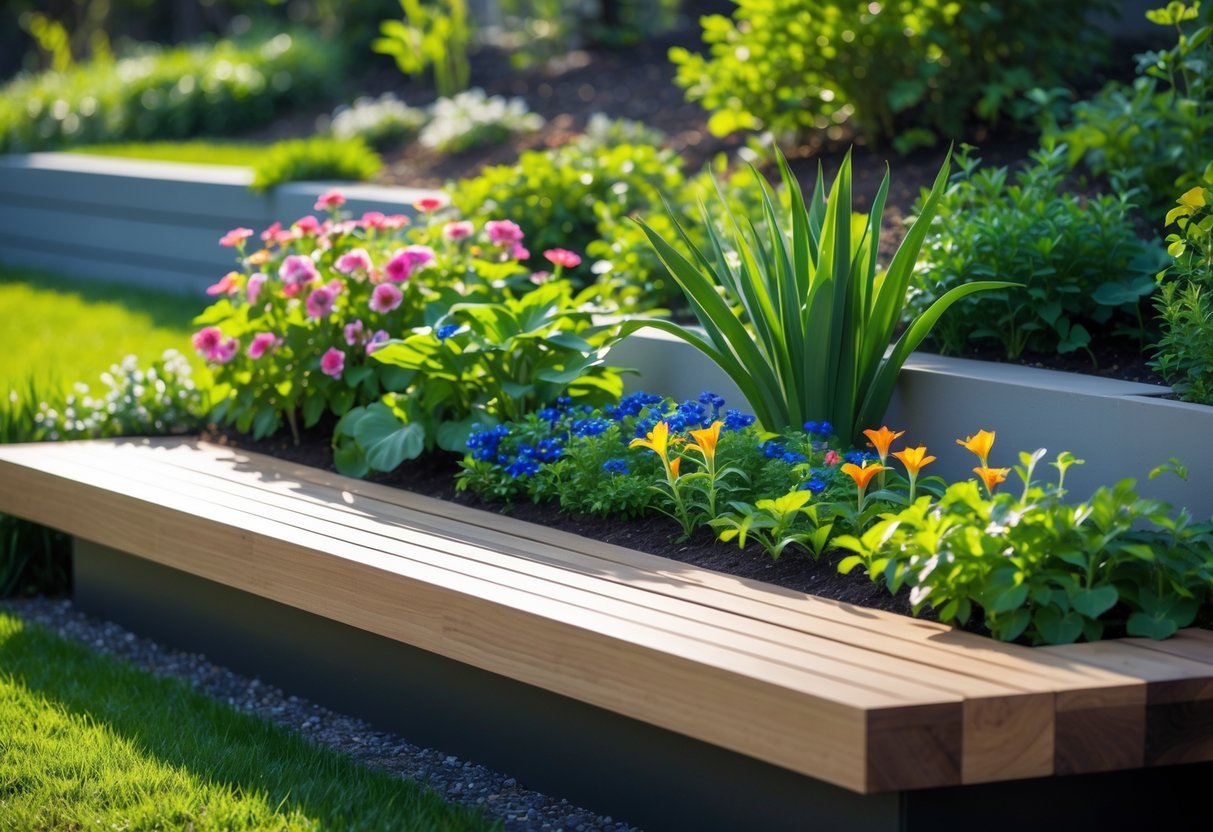 Choose durable materials and good drainage to protect both plants and the bench. Plant low-maintenance species like herbs, succulents, or compact perennials to reduce upkeep.