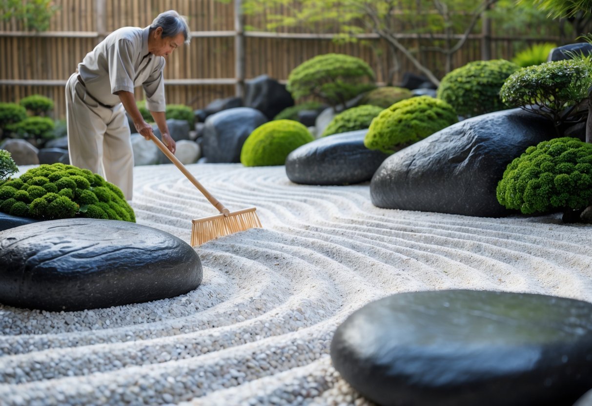 You will focus on balance, careful placement of stones, and deliberate gravel patterns to create a calm space. These parts work together to suggest nature, control sight lines, and invite quiet reflection.