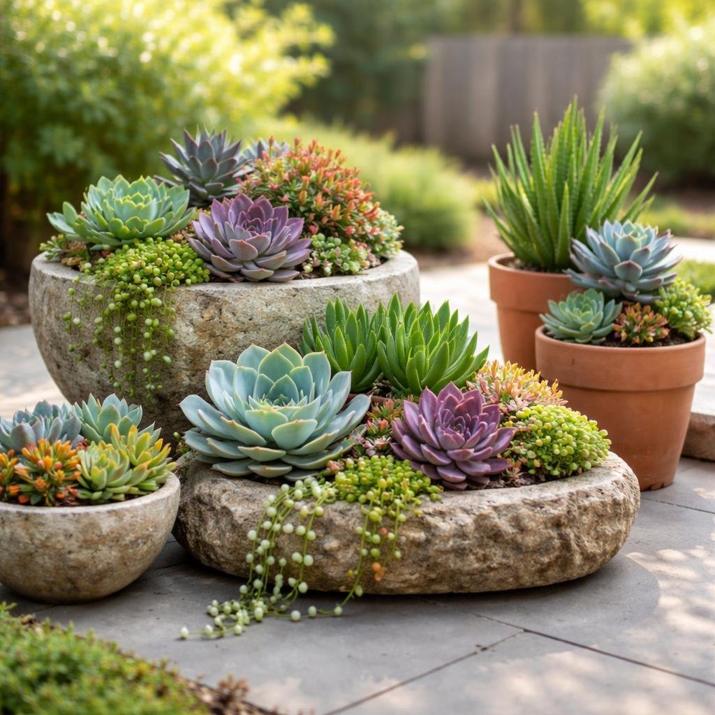 Soil and placement matter more than constant attention. Plant succulents in gritty, well-draining mix and give them full sun to partial shade depending on the variety. This prevents root rot and keeps plants compact.