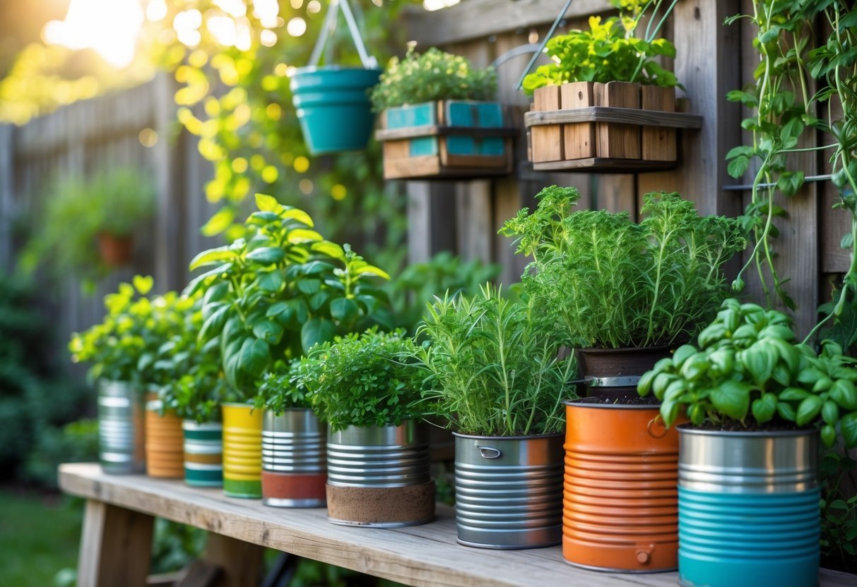 You can turn old tins, mason jars, or wooden crates into neat herb planters that fit small yards. Use containers with drainage holes and a lightweight potting mix for healthy roots.