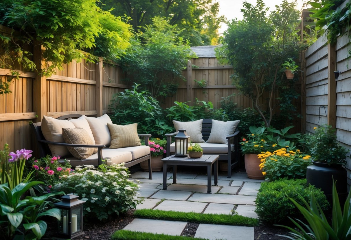 This section gives clear, practical steps you can use right away. It covers cheap materials, simple layouts, space-saving plants, no-grass solutions, easy care methods, and ways to fit seating and dining into a tight yard.