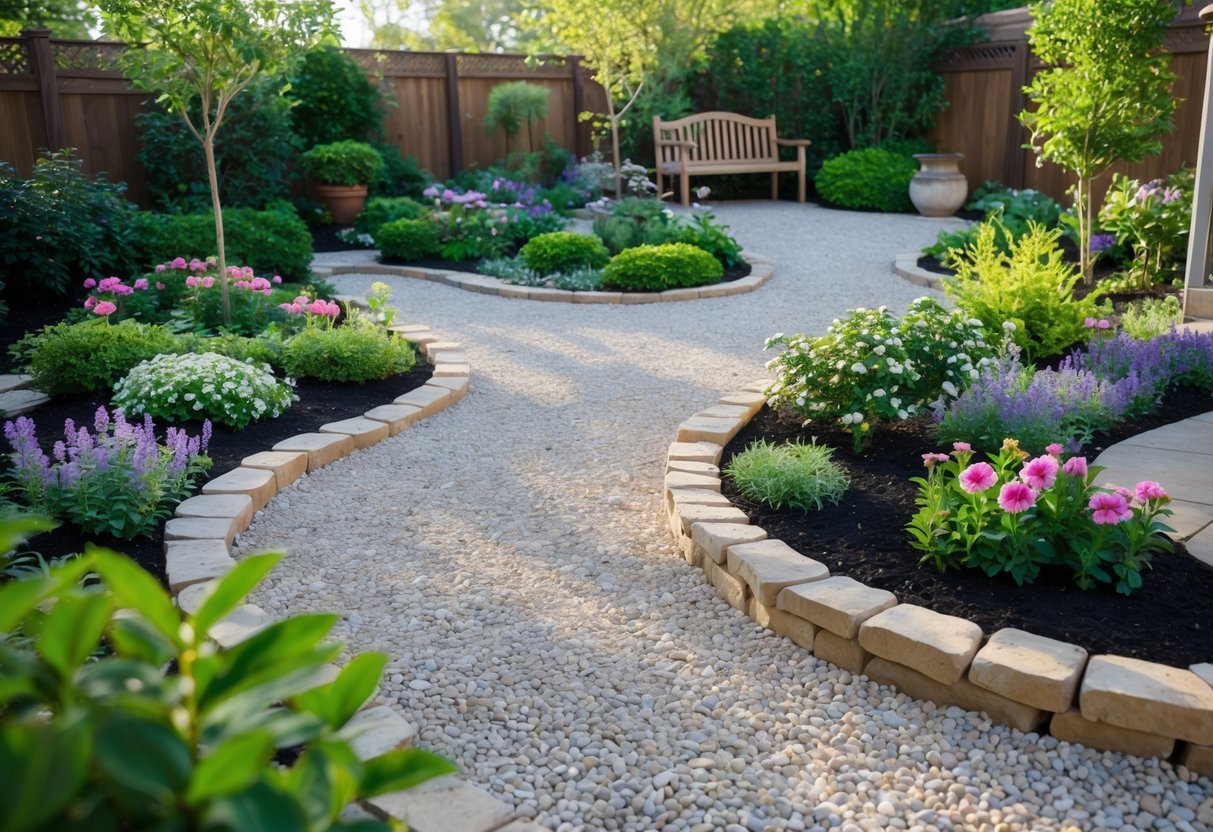 You can add a gravel path to guide movement and shape small spaces without crowding them. Gravel stays low‑maintenance and drains well, so you won’t deal with puddles.