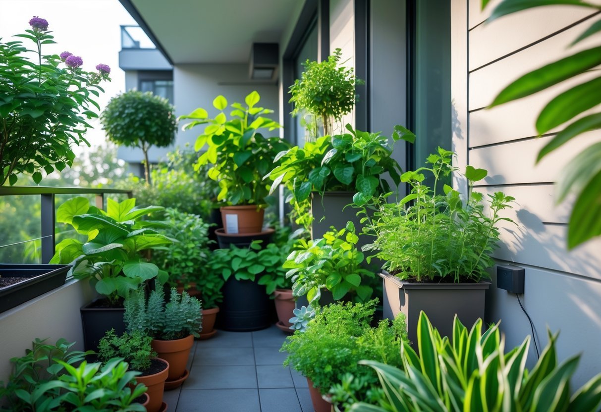 Mix plant types on vertical supports: leafy herbs at waist height for easy harvesting, trailing plants higher to soften edges, and compact shrubs in pots below. Choose lightweight containers and a good watering system—drip lines or soaker hoses work best for stacked setups. Anchor all structures to the wall or floor to prevent toppling in wind.