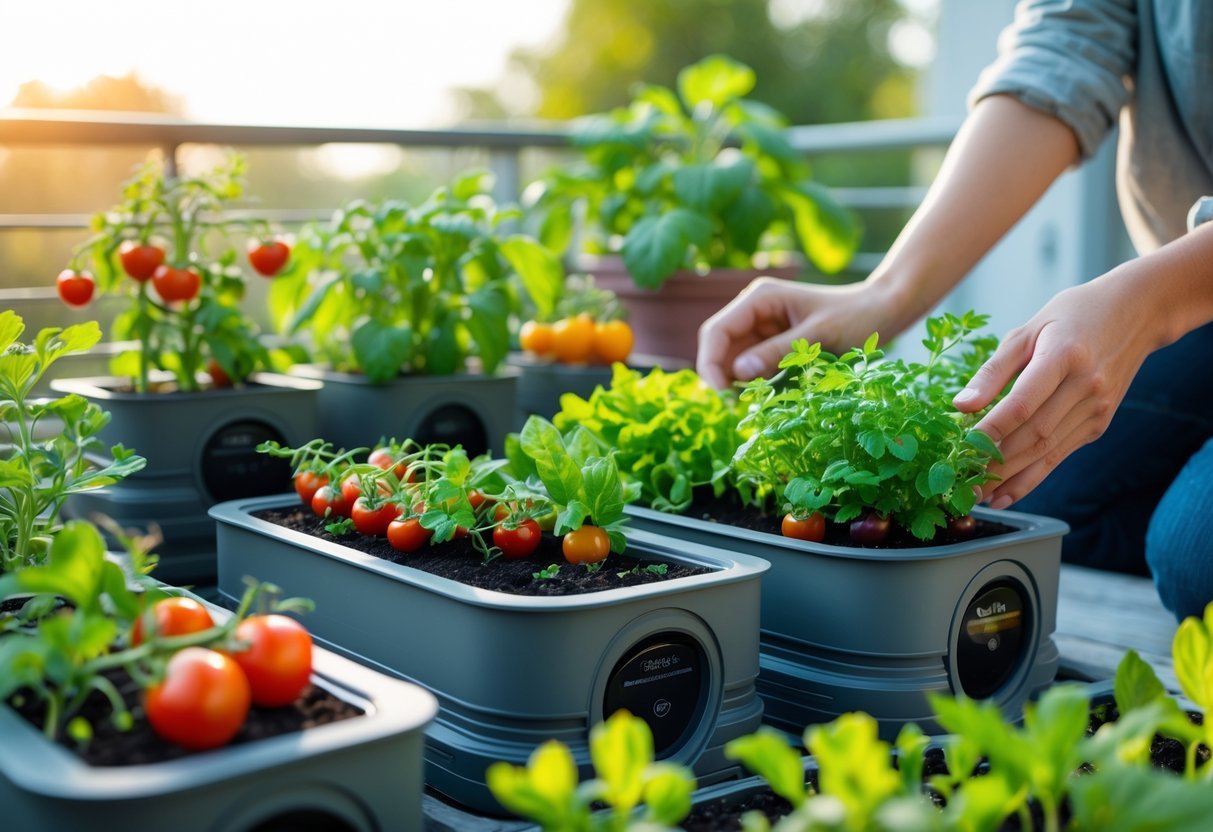 You can grow many vegetables in self-watering pots on a balcony or patio. These pots keep soil moist longer, so you water less often and plants suffer fewer stress cycles.