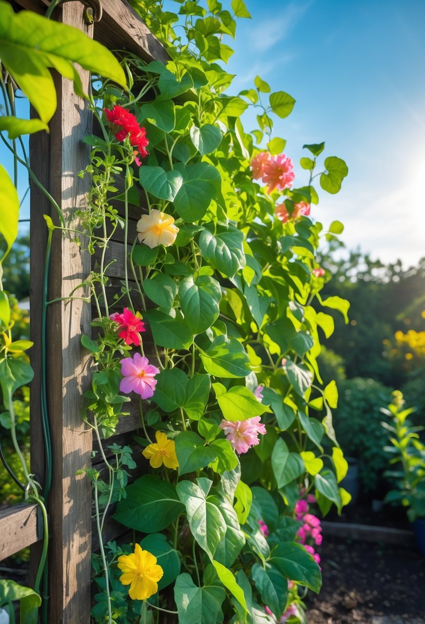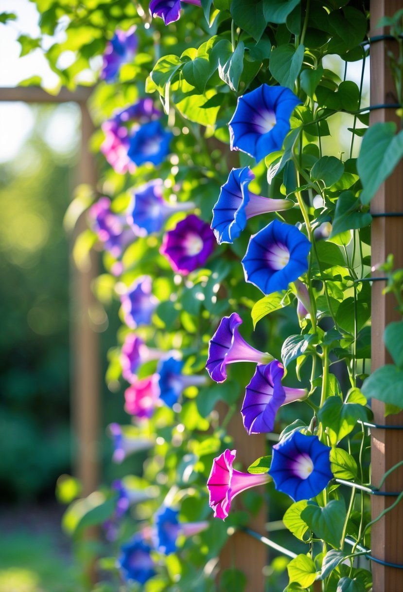 They bloom in many colors and grow fast, making them ideal for filling vertical spaces during warm months. Deadhead spent flowers to encourage more blooms.