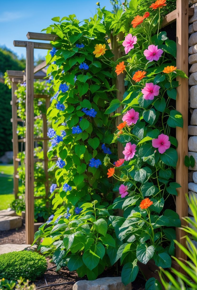 Fast-growing options like morning glory and trumpet vine create quick coverage for fences or trellises.